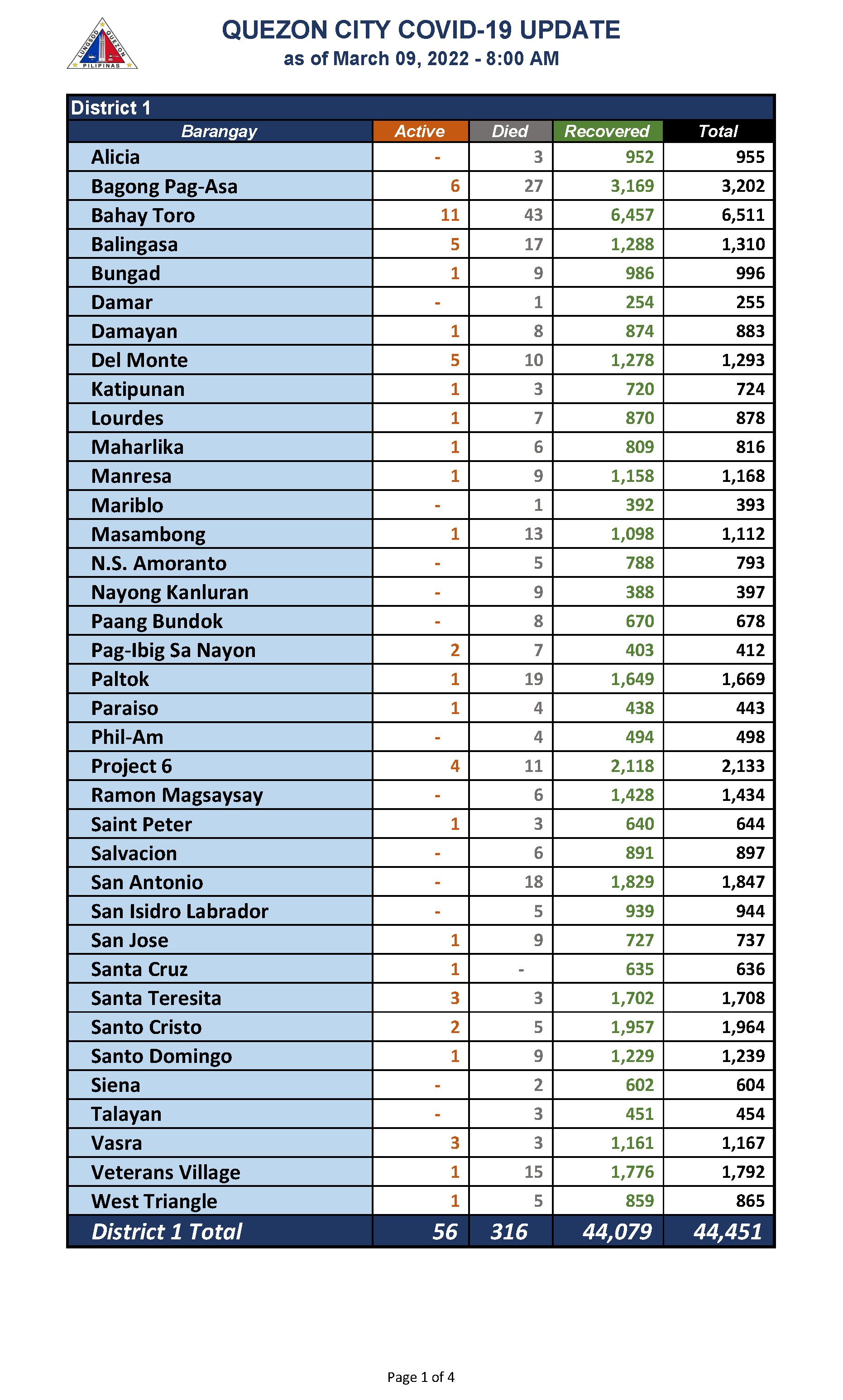 QC COVID-19 UPDATE – AS OF March 09, 2022 – 8AM