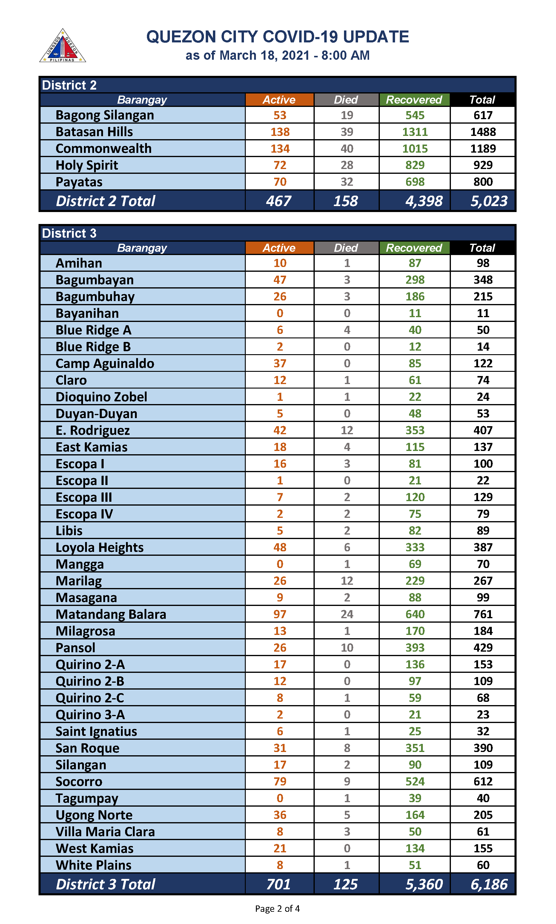 QC COVID-19 UPDATE – AS OF March 18, 2021 – 8AM