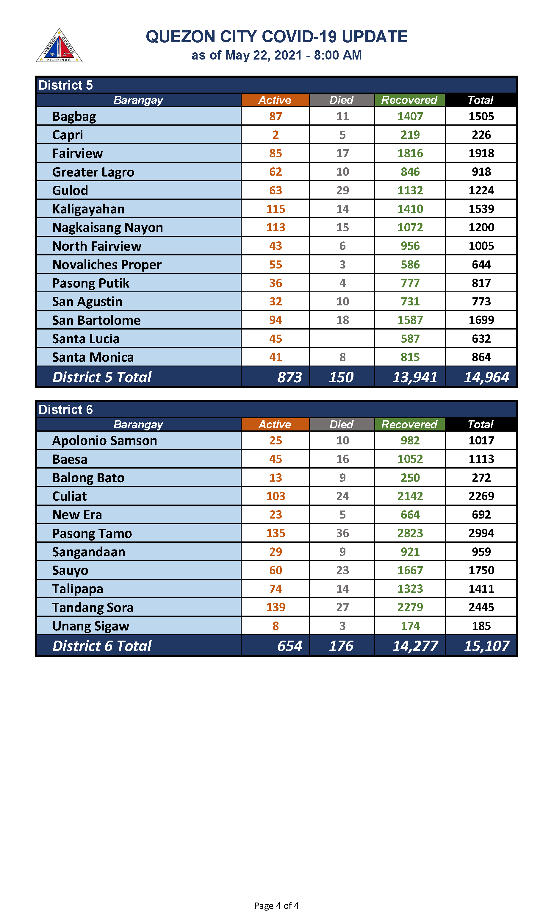 QC COVID-19 UPDATE – AS OF May 22, 2021 – 8AM