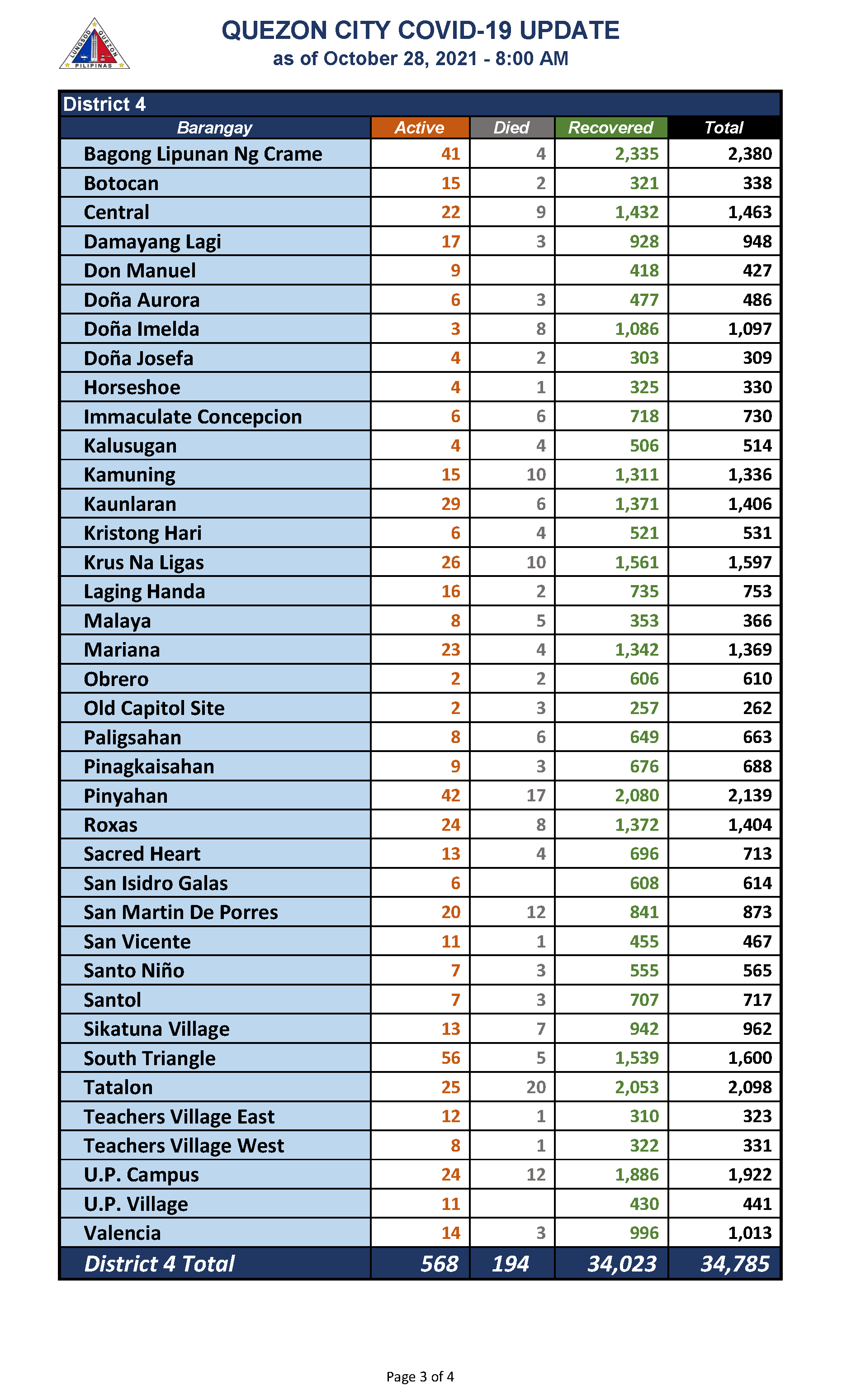 QC COVID-19 UPDATE – AS OF October 28, 2021 – 8AM