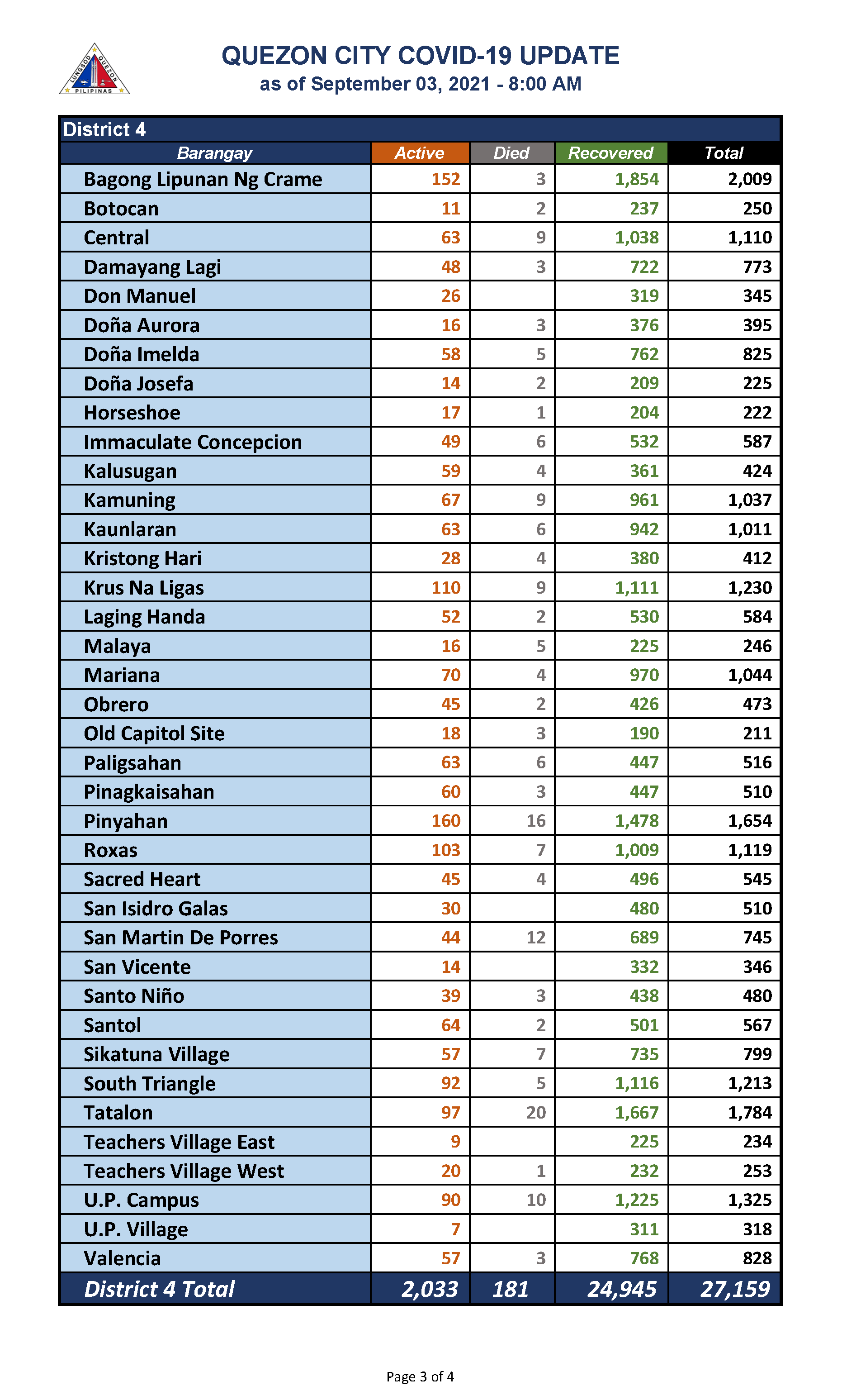 QC COVID-19 UPDATE – AS OF September 04, 2021 – 8AM