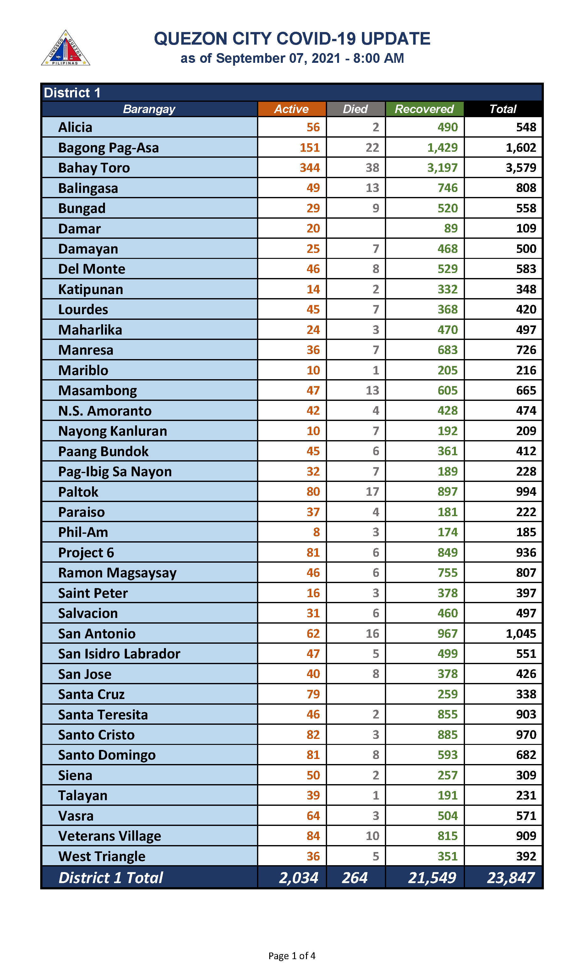 QC COVID-19 UPDATE – AS OF September 07, 2021 – 8AM