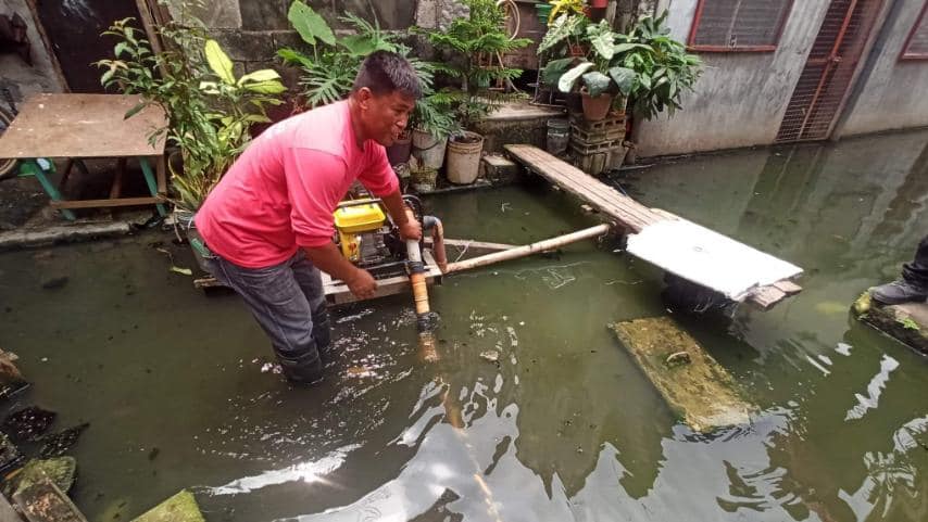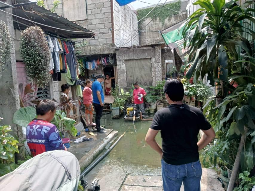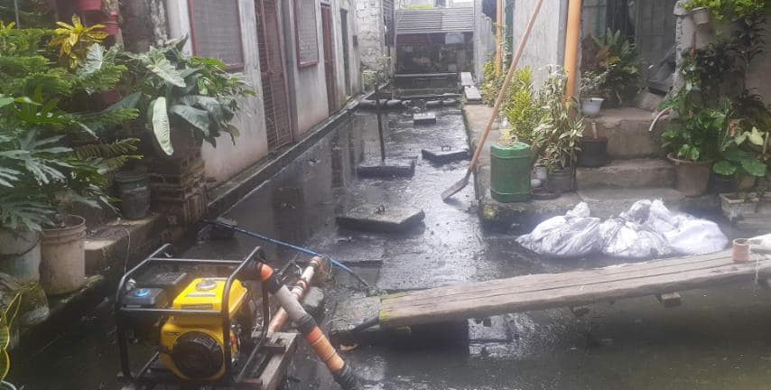 Sa tulong ng Quezon City Engineering Team, nagsagawa ng declogging sa kanal gamit ang motor pump mula sa homeowners association.