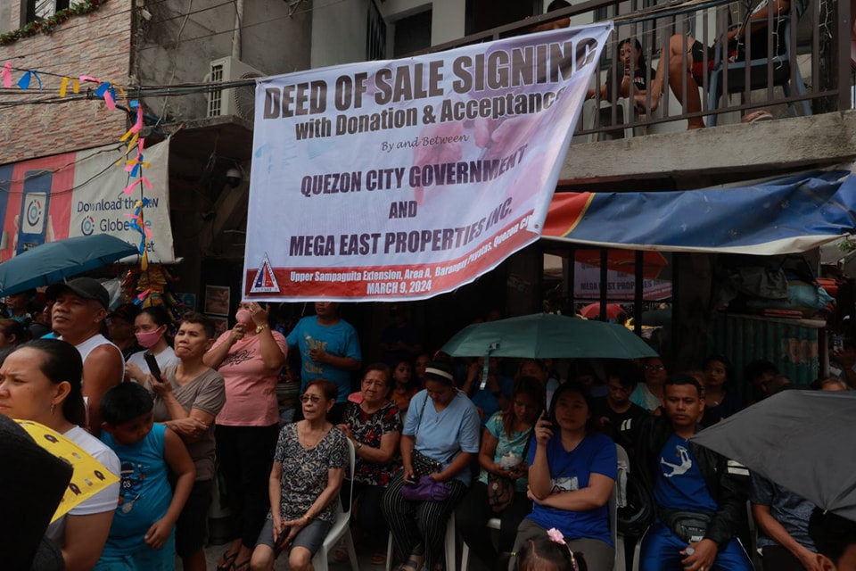 Malapit nang maging permanenteng QCitizen homeowners ang mga taga Barangay Payatas matapos ang Deed of Sale Signing sa pagitan ng Quezon City Government, The Manila Remnant Company Co Inc., at ng Mega East Properties Inc. ngayong araw.
