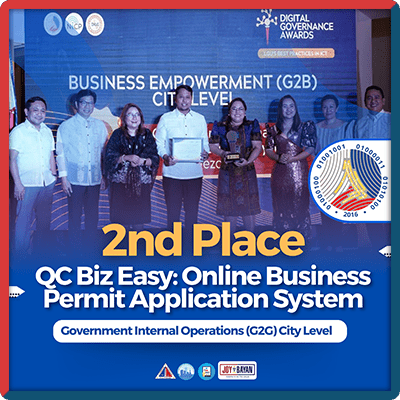 - Digital Governance Awards – 2nd Place QC Biz Easy: Online Business Permit Application System