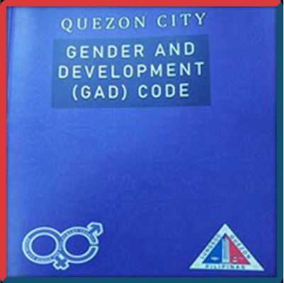 - City Ordinance No. SP-2493, S.2004 entitled “Designating A Gender And Development (GAD) Focal Person For Every Barangay To Serve As Coordinator With Gender And Development Council (QC-GAD) And authorizing Each Barangay To Appropriate At Least 5% From Their Annual Budget For GAD-Related Programs, Projects And Activities”