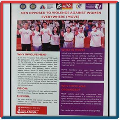 Awareness Raising, Information Dissemination, And Education Activities On GAD Such As Women’s Month, 18 Day Campaign To End Violence On Women, GAD Summit, Committee On Decorum And Investigation (CODI), Men Opposed to Violence Against Women Everywhere (MOVE) and others.