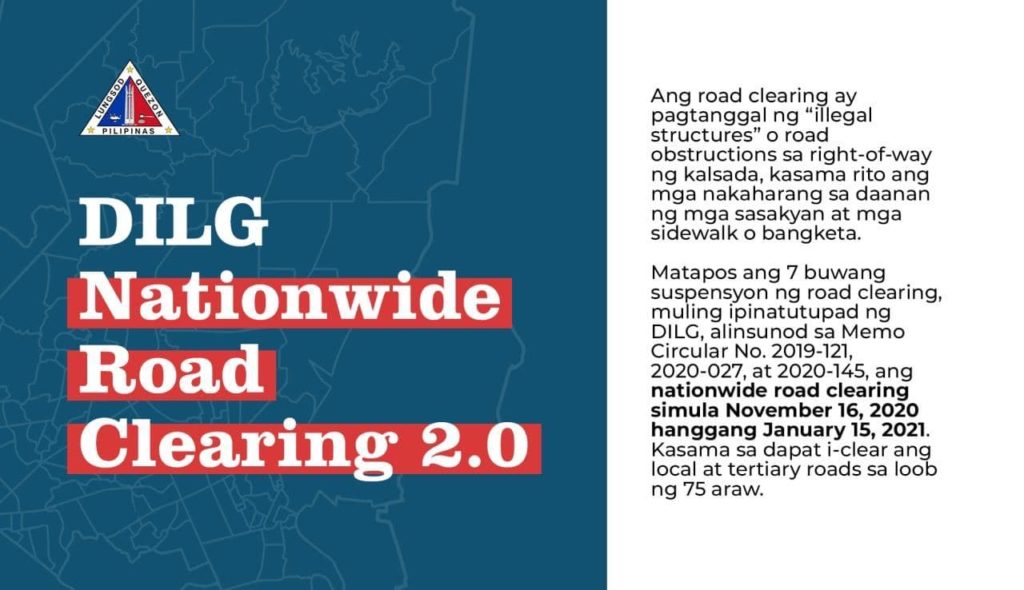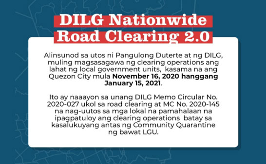 Muling magsasagawa ng road clearing operations simula bukas Nov. 16 hanggang Jan. 15 ang Quezon City alinsunod sa utos ng Department of the Interior and Local Government.