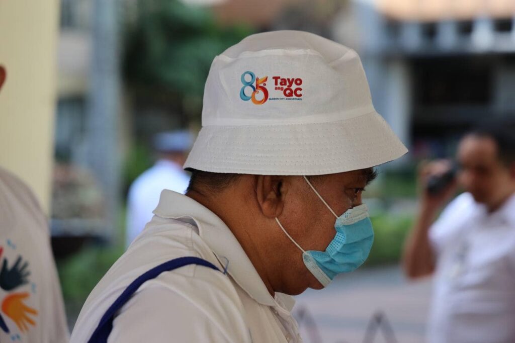 Namahagi ang QC ng 85th founding anniversary bucket hat sa mga kawani na present sa unang 6:30 AM flag-raising ceremony ng lokal na pamahalaan.