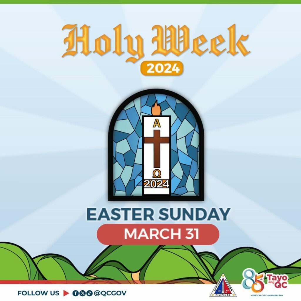 March 31, 2024 222 Happy Easter Sunday, QCitizens! Ating ipagdiwang ang Pasko ng muling Pagkabuhay ni Hesukristo nang puno ng kagalakan, pagmamahal, at pagpapala! Share this post :