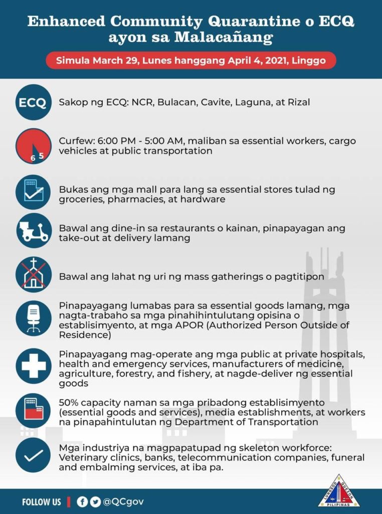 Enhanced Community Quarantine (ECQ) March 29 – April 4, 2021