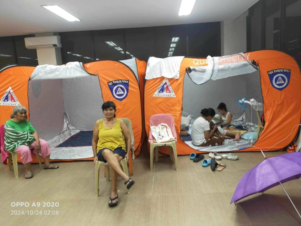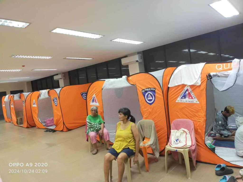 Pansamantalang nanunuluyan sa Brgy. Doña Imelda Covered Court ang 5 pamilya na binubuo ng 18 indibidwal dulot ng malakas na pag-ulan dala ng Bagyong #KristinePH.
