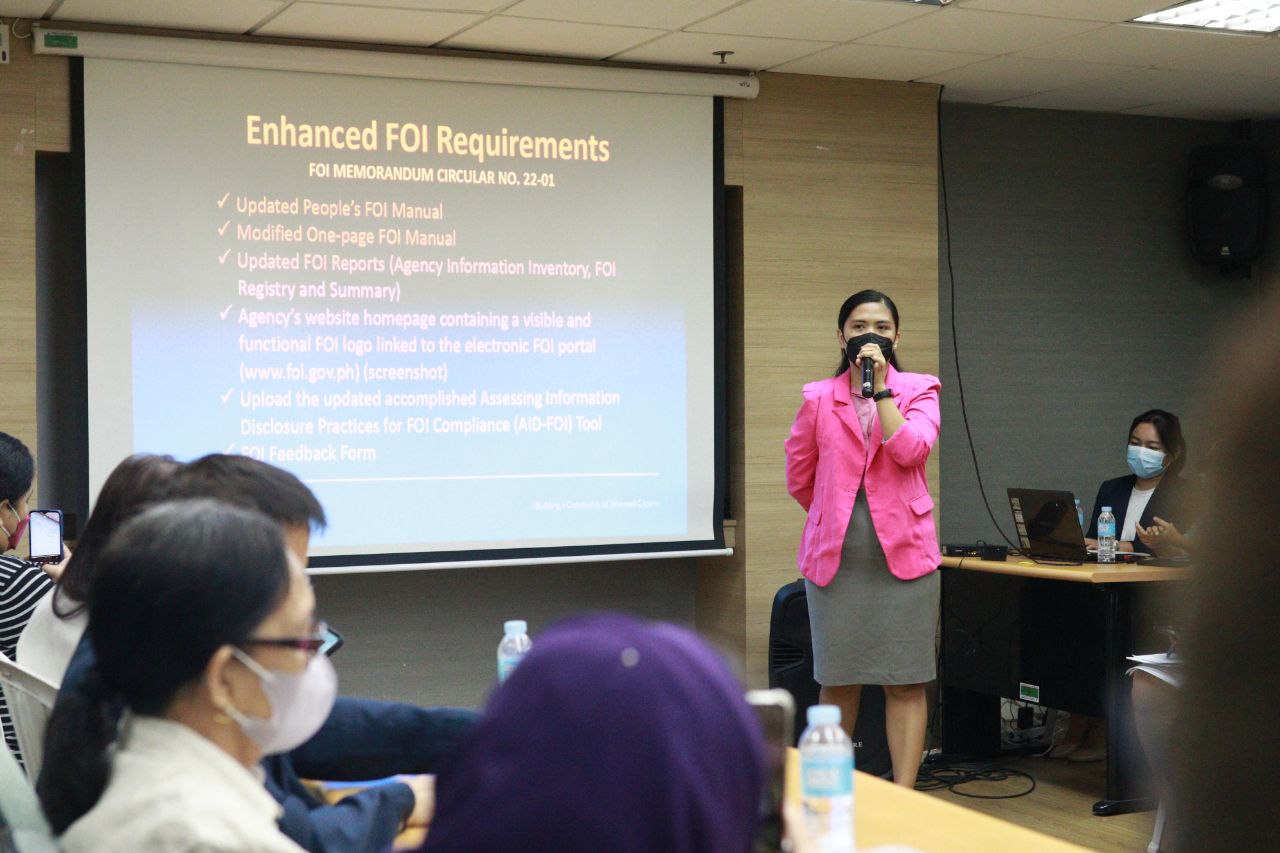 Mismong FOI-Project Management Office ang nagsagawa ng orientation upang talakayin kung anu-ano ang mga uri ng dokumento o impormasyon ang maaaring ibahagi ng mga departamento at opisina sa requesting public. Ipinaliwanag din kung paano ito i-proseso nang hindi maisasaalang-alang ang privacy base sa RA 10173 o Data Privacy Act of 2012.