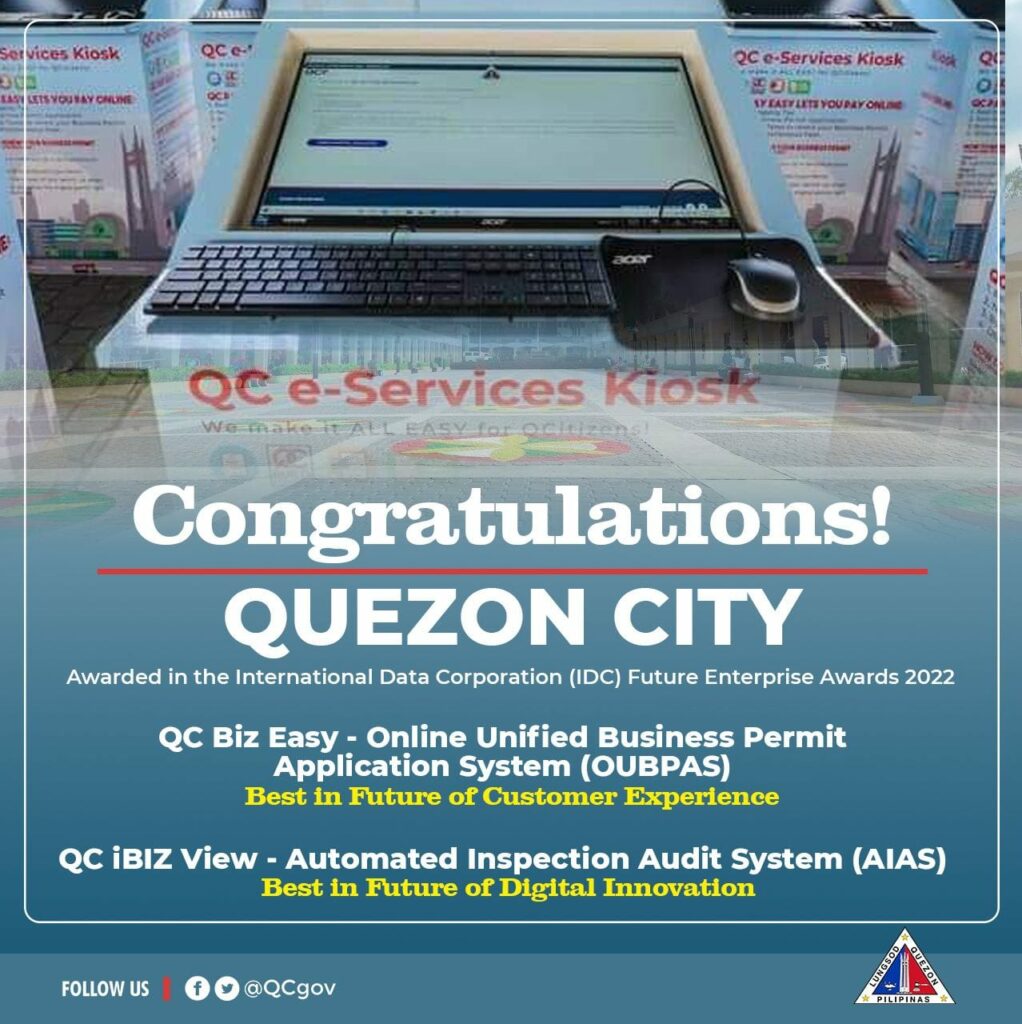 Wagi ang ilan sa mga programa ng Quezon City sa ginanap na Future Enterprise Awards 2022 ng International Data Corporation (IDC).