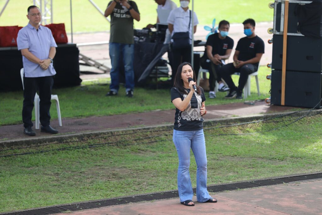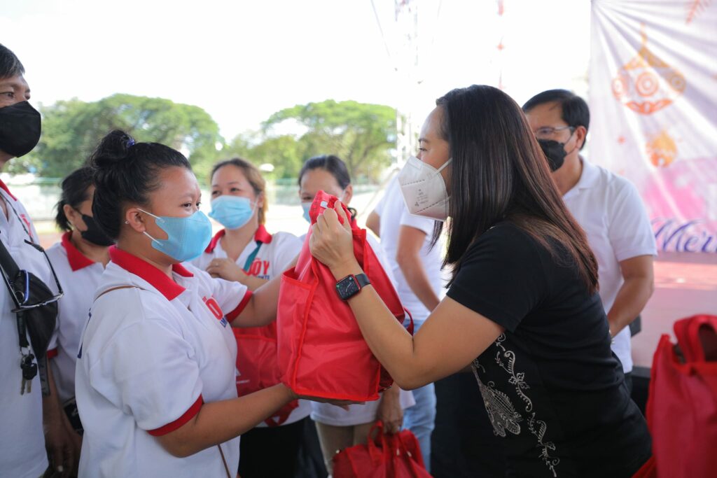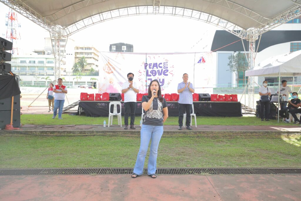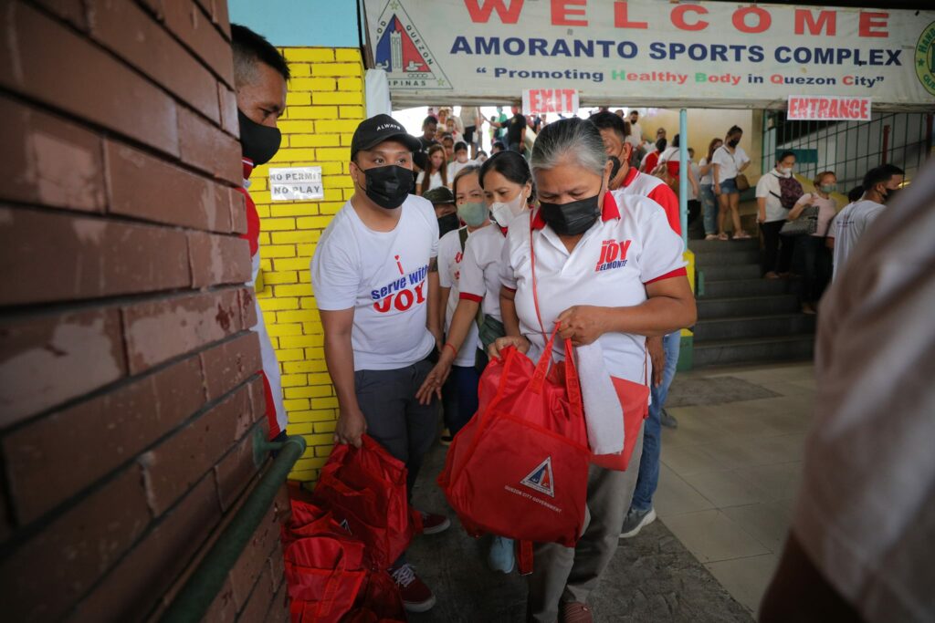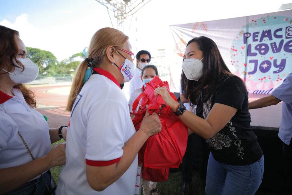 Personal na ipinamahagi ni Mayor Joy Belmonte ang gift bags para sa 3,810 na miyembro ng Joy Belmonte Volunteers Movement (JBVM) mula sa Distrito 4, sa Amoranto Sports Complex.