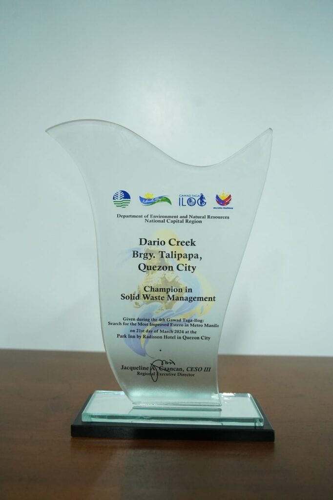 Iginawad ito ng Department of Environment and Natural Resources (DENR) para sa Dario Creek ng Brgy. Talipapa, QC.