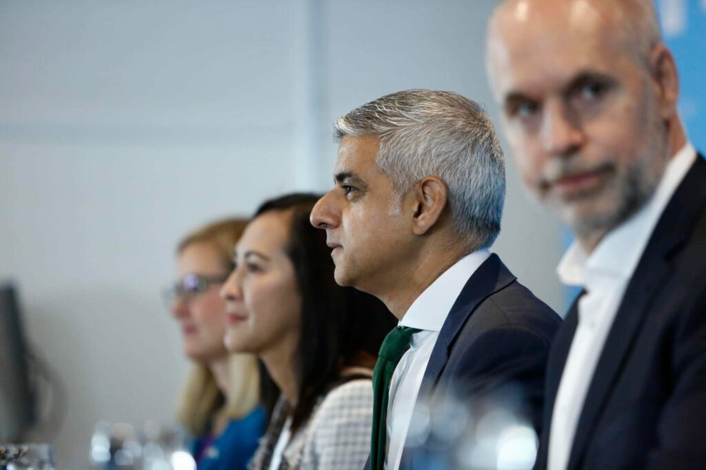 Present in the Green Jobs press conference were Mayor of London and Chair of C40 Sadiq Khan, Mayor of Buenos Aires Horacio Rodríguez Larreta, Mayor of Phoenix and C40 Vice Chair for Green Jobs Kate Gallego, Mayor of Tshwane Randall Williams, and Quezon City Mayor Joy Belmonte.