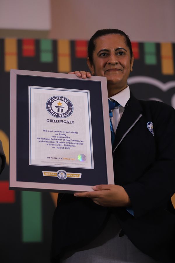 Nakamit ng National Federation of Hog Farmers, Inc. (NatFed) ang bagong Guinness World Record sa pinakamaraming pork dishes na inihain at idinisplay bilang bahagi ng Hog Festival celebration sa Gateway Mall sa Lungsod Quezon ngayong araw.