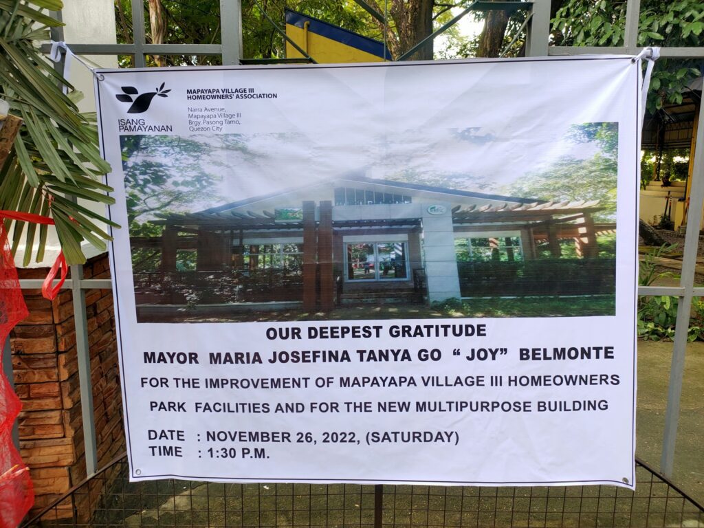 Pormal nang binuksan ang bagong parke at multipurpose hall sa Mapayapa III Village sa Barangay Pasong Tamo.