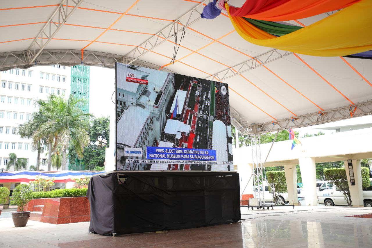 Nagsagawa ng viewing party ang pamahalaang lungsod upang masaksihan ang inagurasyon ni Pangulong Ferdinand Marcos Jr. na ginanap sa Risen Garden, QC Hall grounds at 15th floor ng High Rise Building.