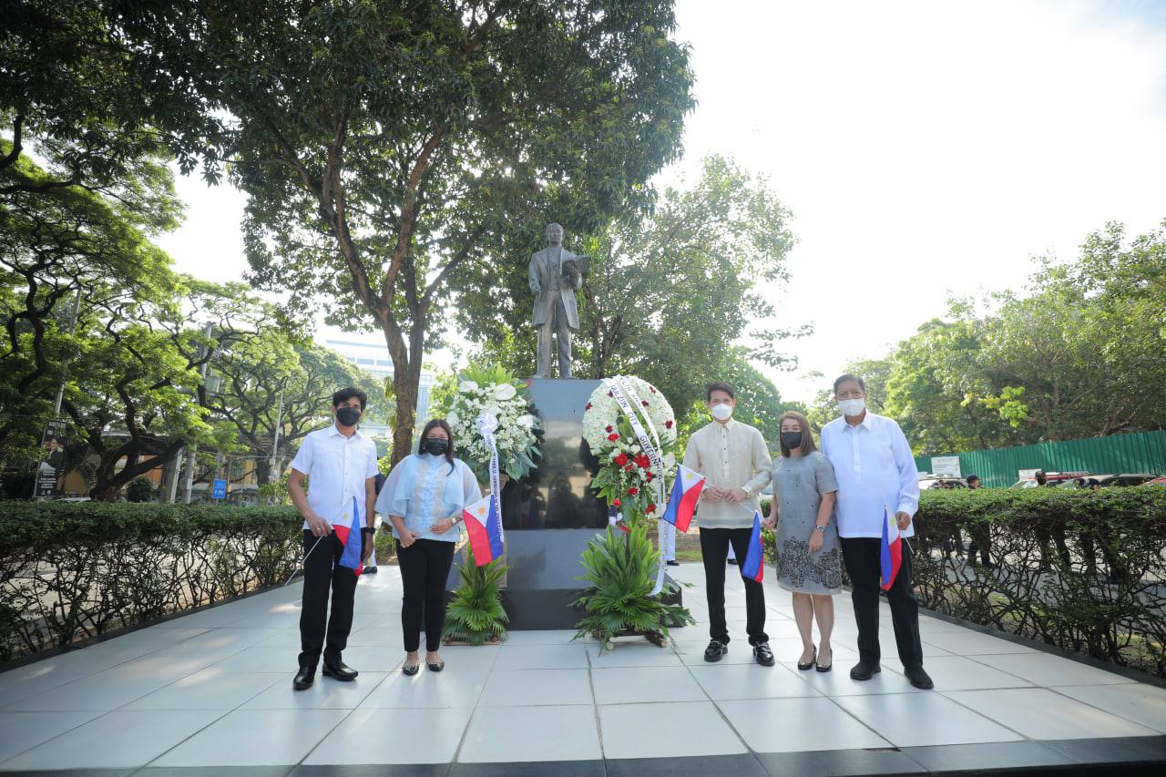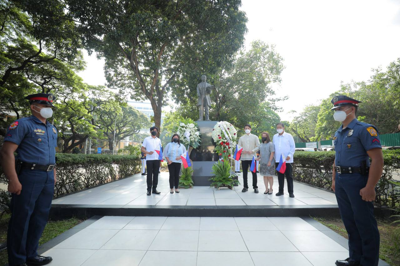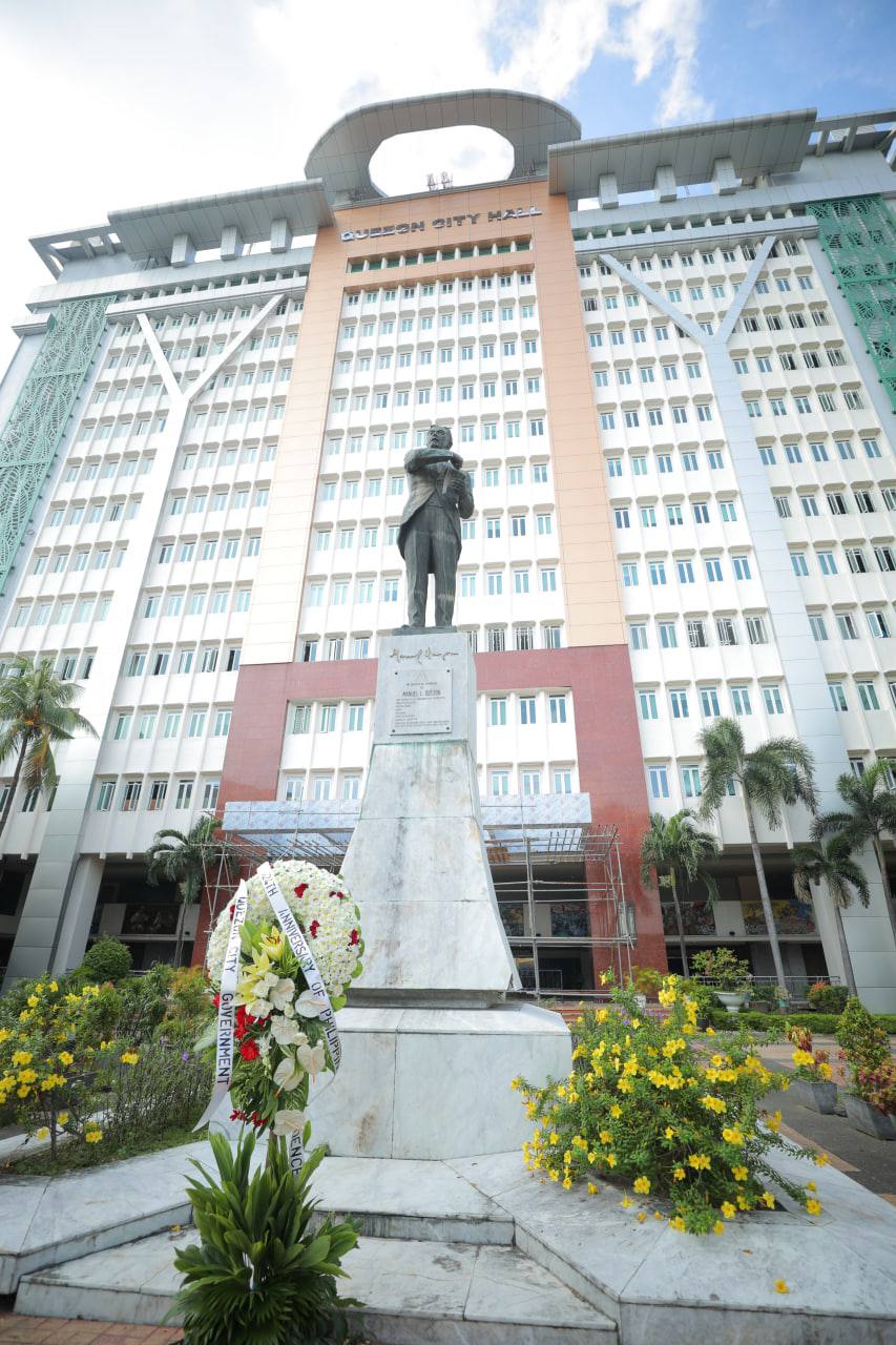 Nag-alay ng bulaklak sina Vice Mayor Gian Sotto, mga opisyal ng pamahalaang lungsod at National Historical Commission of the Philippines (NHCP) sa bantayog ng mga bayani na sina Dr. Jose Rizal, Manuel Quezon, at Andres Bonifacio sa loob ng QC Hall compound.