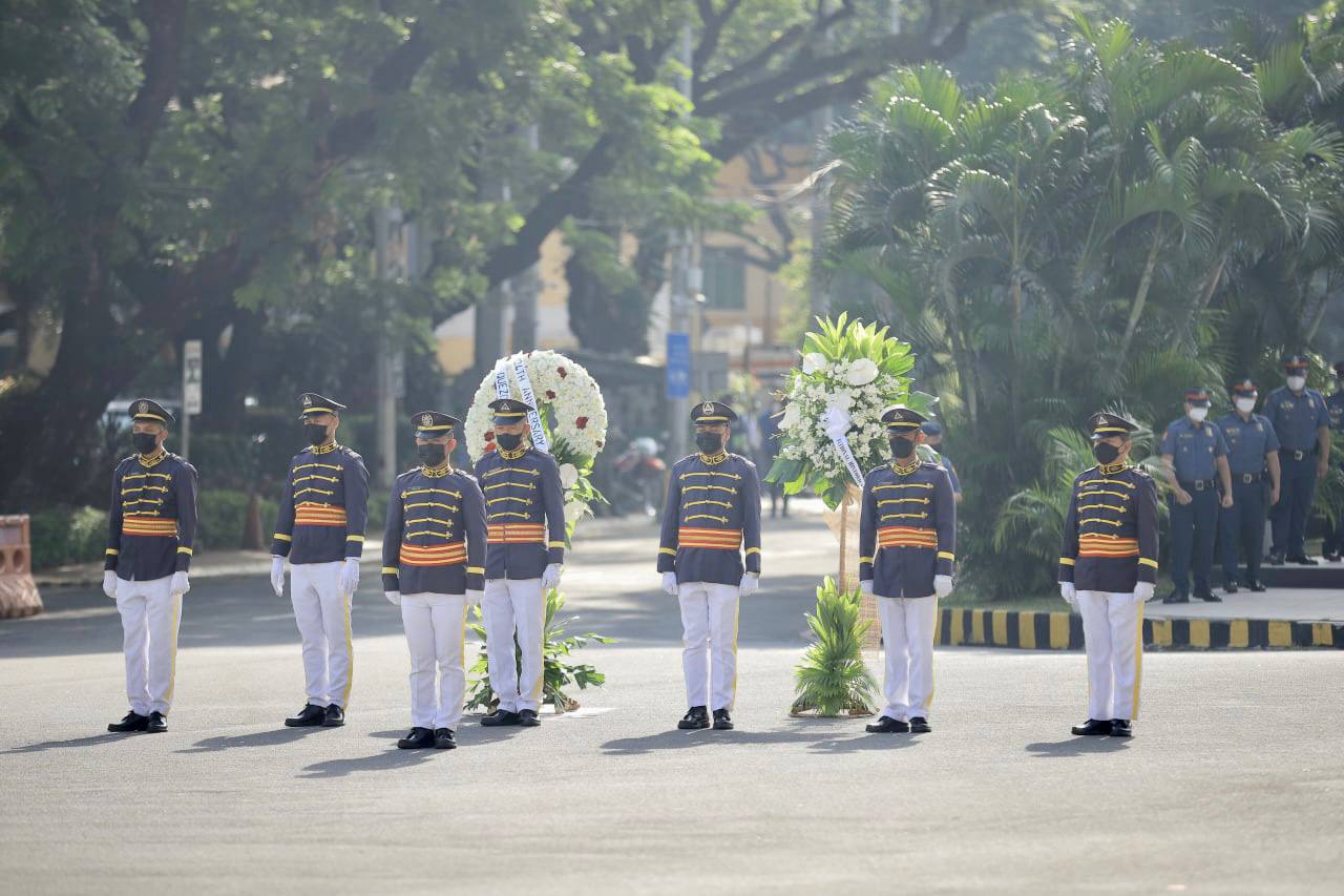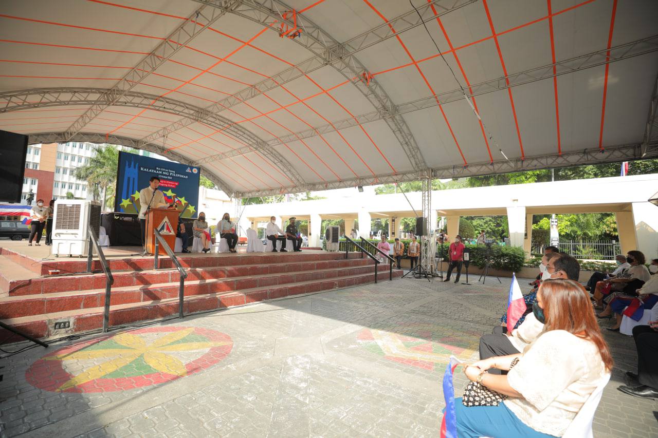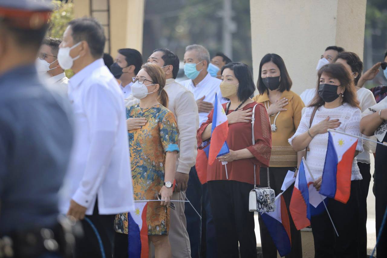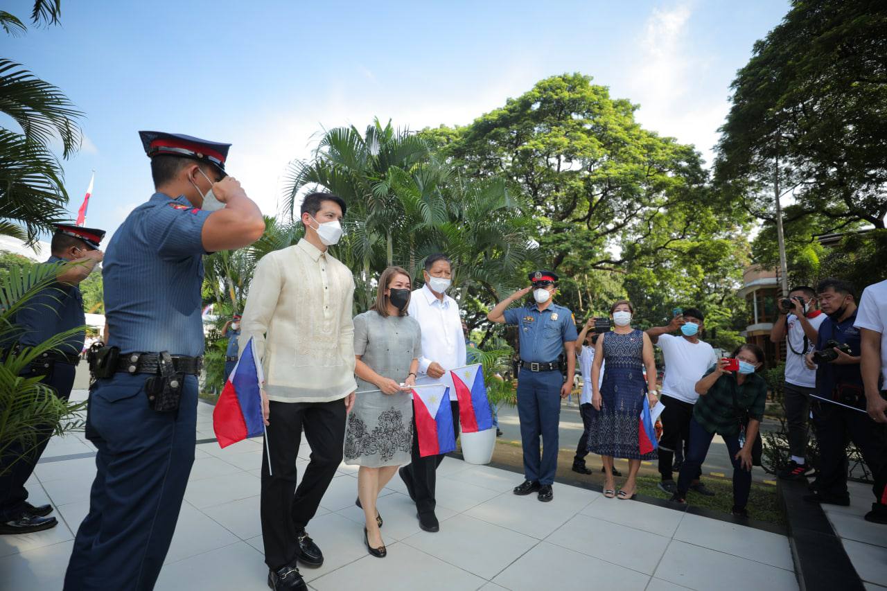 Nag-alay ng bulaklak sina Vice Mayor Gian Sotto, mga opisyal ng pamahalaang lungsod at National Historical Commission of the Philippines (NHCP) sa bantayog ng mga bayani na sina Dr. Jose Rizal, Manuel Quezon, at Andres Bonifacio sa loob ng QC Hall compound.