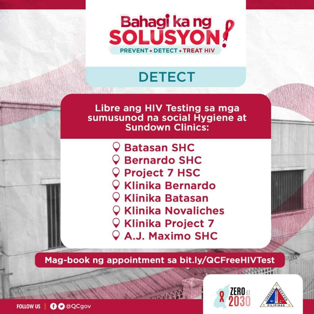 Social Hygiene at Sundown Clinics sa ating lungsod. Sa mga nais magpakonsulta, mag-book ng appointment sa: bit.ly/QCFreeHIVTest