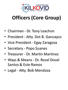 Kilusang Kontra COVID is a people’s initiative to help in the COVID response. While it fully supports government strategies and mandates, KilKoVid will lend its ears and share its voice, in strongly recommending sound decisions and options in this time of crisis.