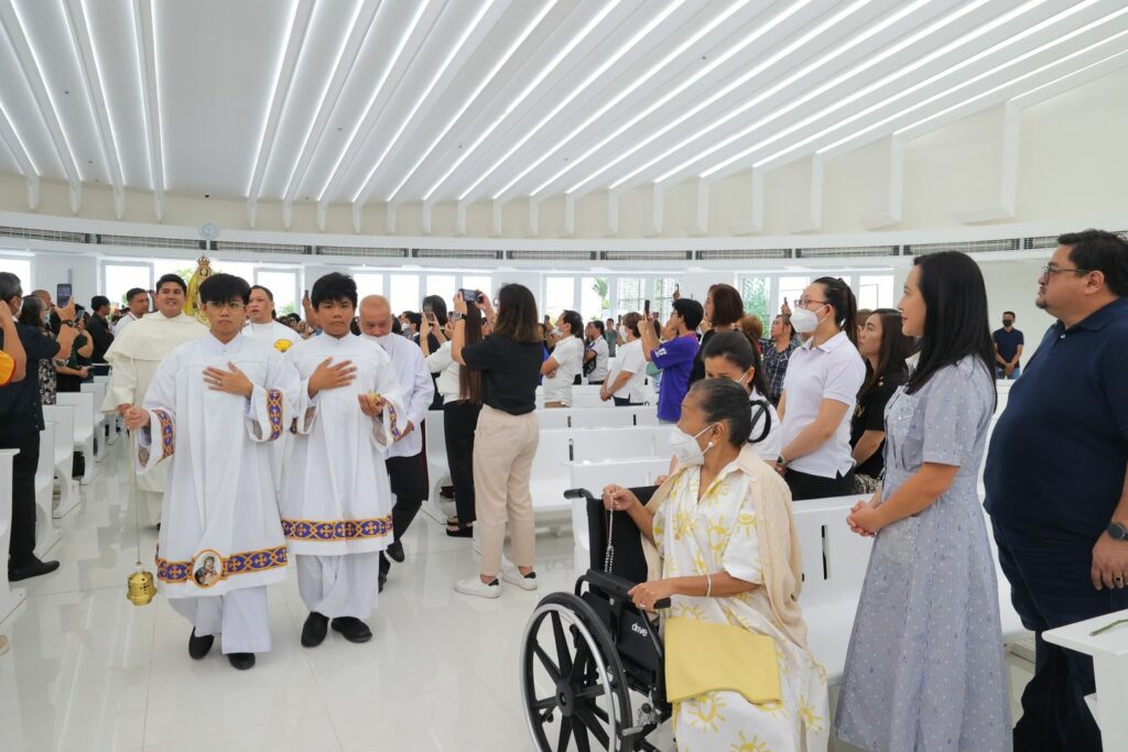 Personal na sinalubong ni Mayor Joy Belmonte ang imahen ng Mahal na Birhen ng La Naval sa pagbisita nito sa Sagrada Familia Church, Gateway 2 sa Distrito 3 kahapon.