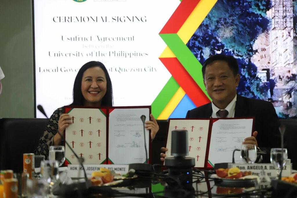 Pormal nang nilagdaan nina Mayor Joy Belmonte at University of the Philippines President Atty. Angelo Jimenez ang Usufruct Agreement para sa paggamit ng ilang lupa sa UP Diliman bilang temporary relocation sites sa mga residente dito.