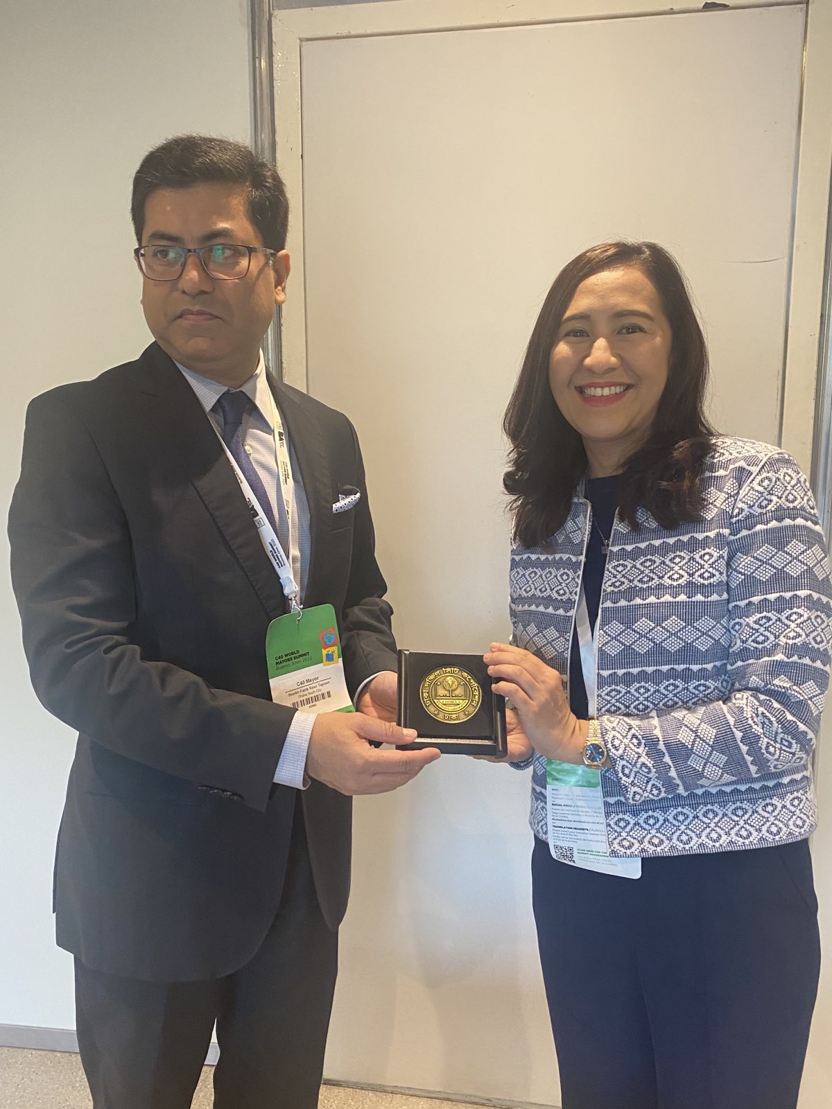 Nakipagpulong sina Mayor Joy Belmonte at QC Climate Change and Environmental Sustainability Department Head Andrea Villaroman kay Dhaka South Mayor Sheikh Faizle Noor Taposh upang mapalalim pa ang ugnayan at magpalitan ng kaalaman ukol sa sustainable development programs ng bawat lungsod.