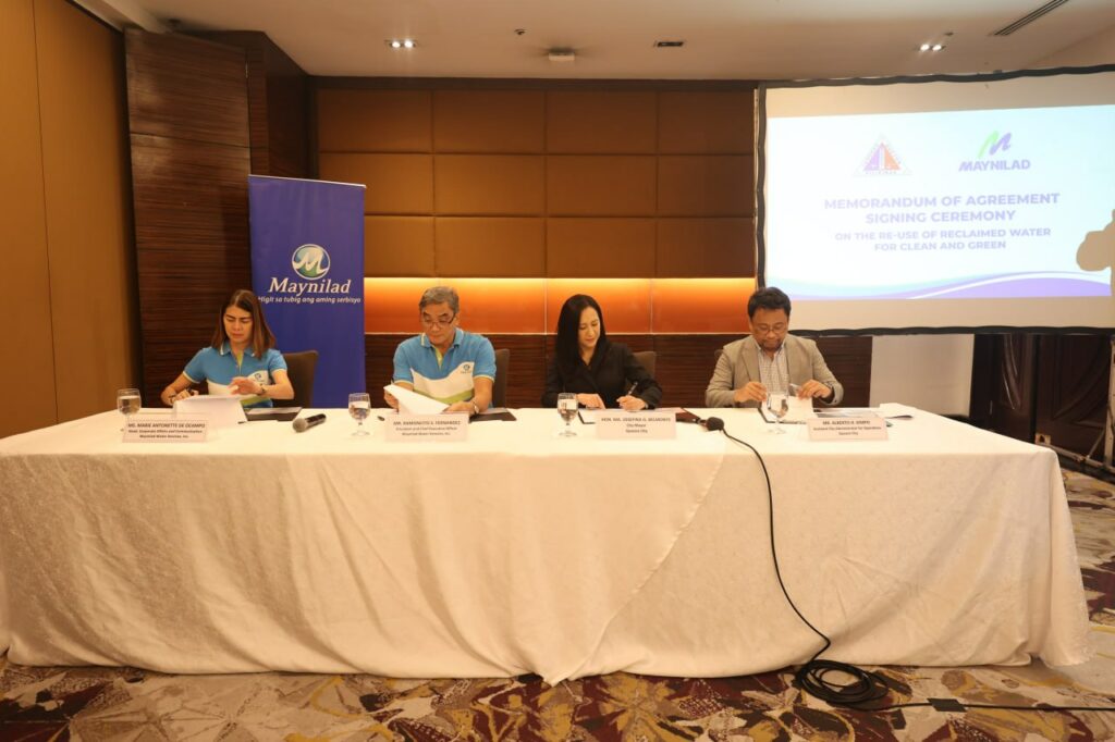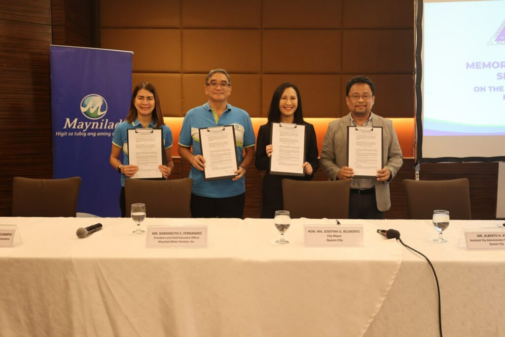 Mismong sina Mayor Joy Belmonte at Maynilad Water Services Inc. President and Chief Executive Officer Ramoncito Fernandez ang lumagda sa memorandum of agreement, kasama sina Assistant City Administrator Alberto Kimpo at Maynilad Corporate Affairs and Communications Head.