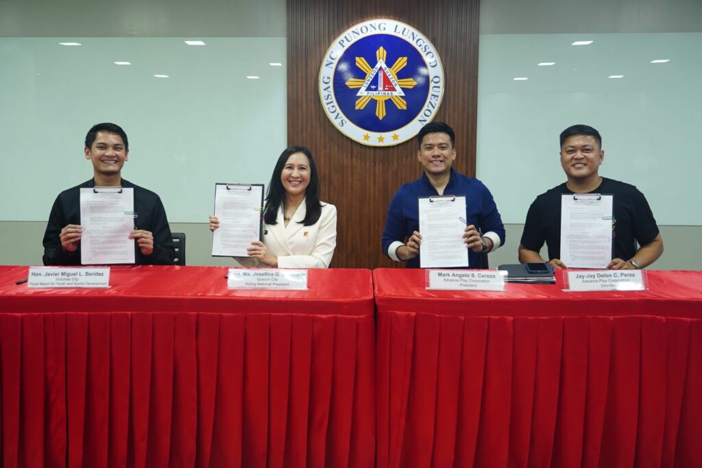 Lumagda sa Memorandum of Agreement sina LCP Acting President Mayor Joy Belmonte, LCP Focal Mayor for Youth and Sports Development Victorias City Mayor Javi Benitez, Advance Play President Mark Angelo Cerezo at Advance Play Director Jay-jay Delon Perez.