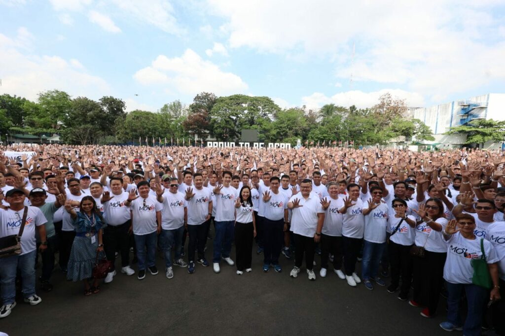 Sabay-sabay na tumindig at nanumpa ang nasa 7,000 kalalakihan bilang myembro ng Men Opposed to Violence Everywhere (MOVE) movement ng Lungsod Quezon sa Camp Karingal.