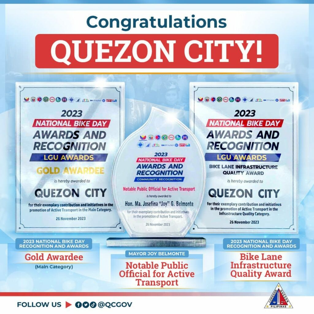 Muli natin itong pinatunayan matapos umani ng mga parangal ang ating lungsod sa ginanap na National Bike Day Awards and Recognition 2023 ng Department of Transportation (DOTr) at Department of the Interior and Local Government (DILG) sa Iloilo City.