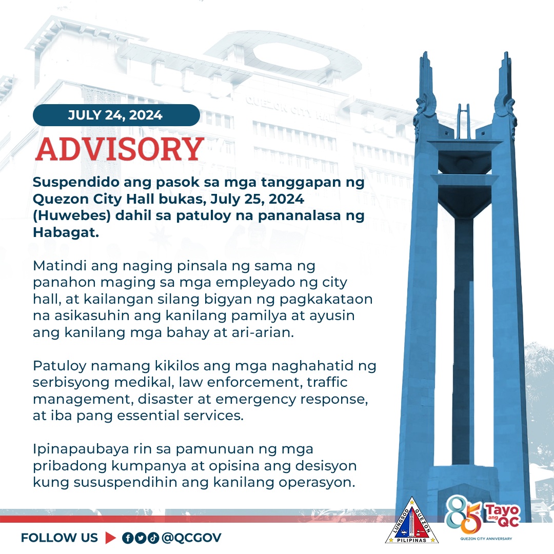 Quezon City Hall Advisory – July 25, 2024