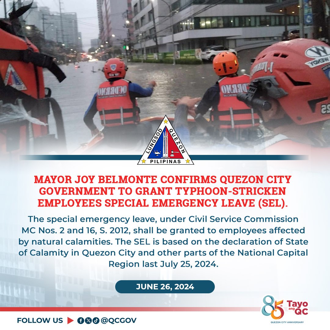 Kinumpirma ni Mayor Joy Belmonte na magbibigay ang Quezon City Government ng Special Emergency Leave (SEL) sa mga empleyadong nasalanta...