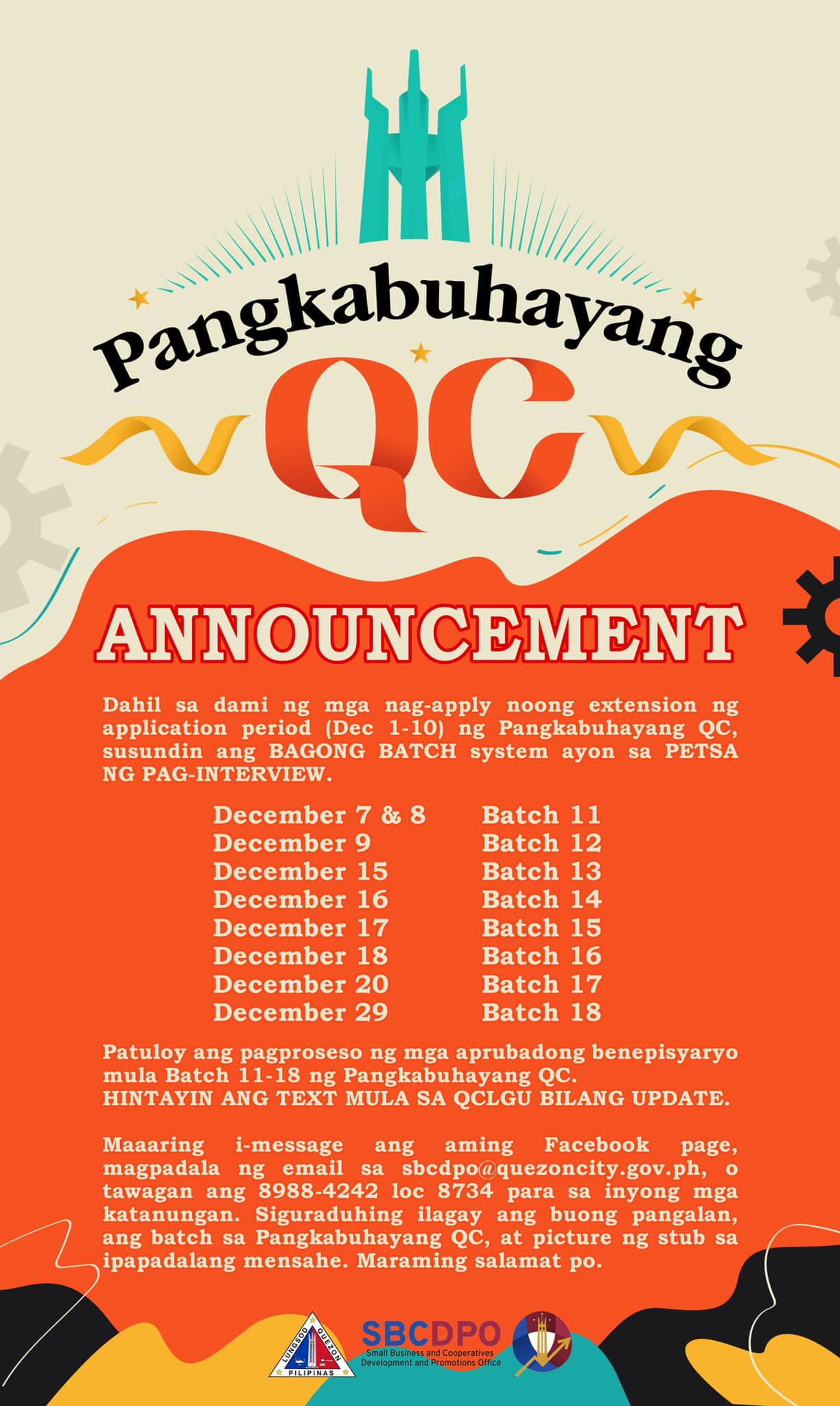 Patuloy ang QC Small Business & Cooperative Development Promotions Office sa pagpo-proseso ng mga aprubadong benepisyaryo ng Pangkabuhayang QC program....