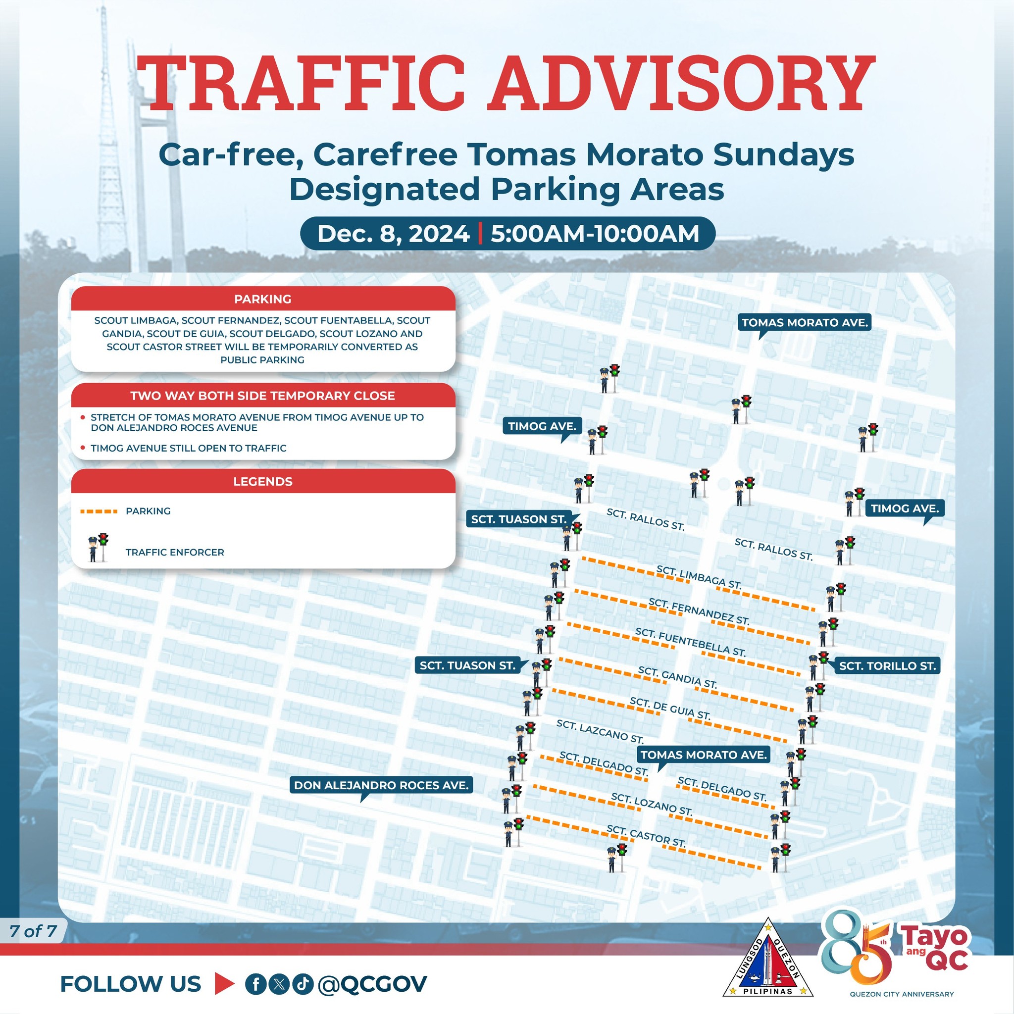 Traffic Advisory: Car Free Tomas Morato – December 8 ,2024