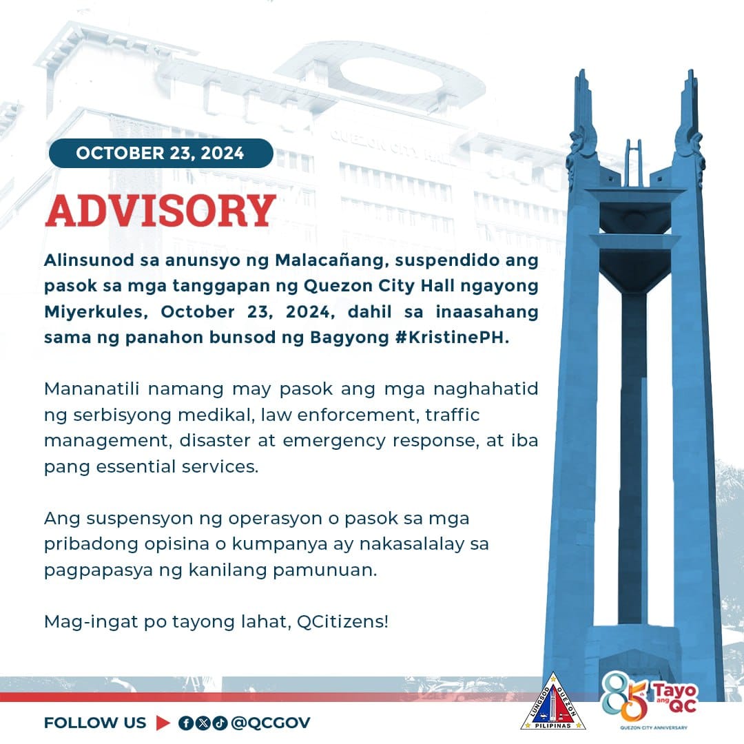 Quezon City Hall Suspension Advisory – October 23, 2024