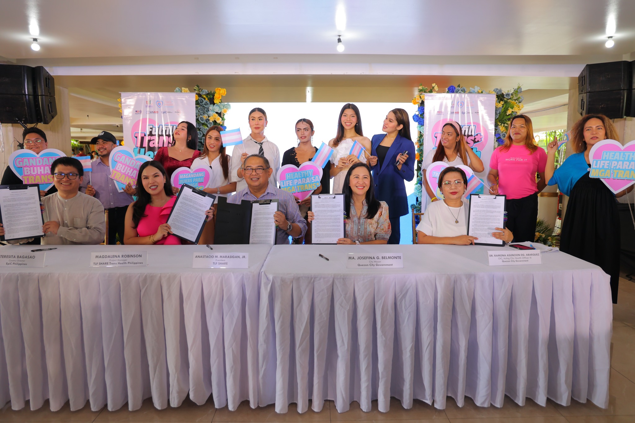 QC supports Trans* Health advocacy! Nilagdaan ni Mayor Joy Belmonte at nina Anastacio Marasigan, Jr. ng TLF Share, Magdalena Robinson...