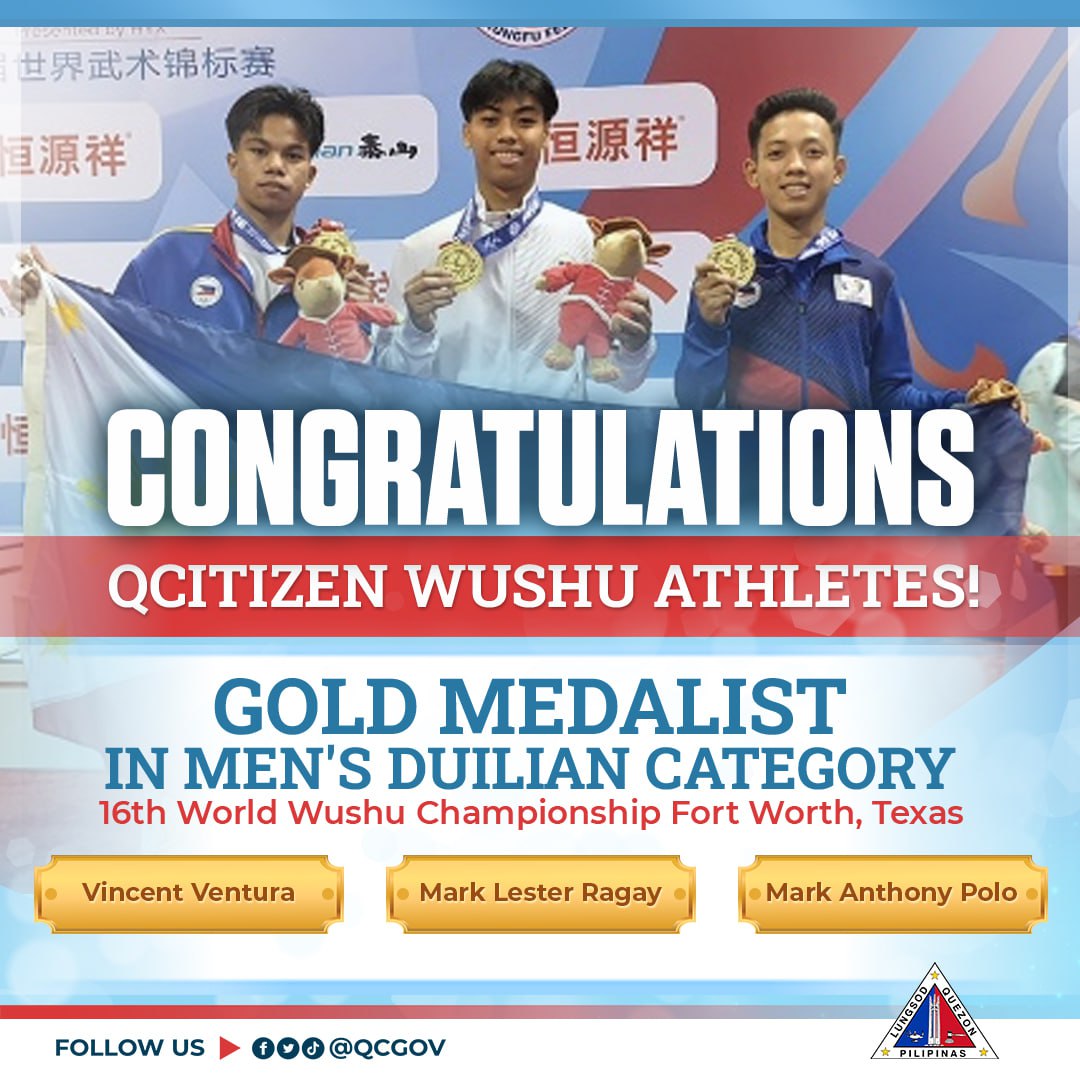 Congratulations sa tatlong QCitizen athletes na nagkamit ng gintong medalya sa Men’s Duilian category sa ginanap na 16th World Wushu...