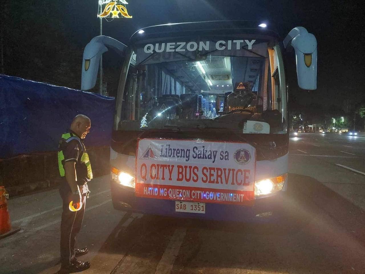 Nasa harapan ng National Housing Authority ang dalawang bus ng City General Services Department bilang karagdagang libreng sakay ng mga...