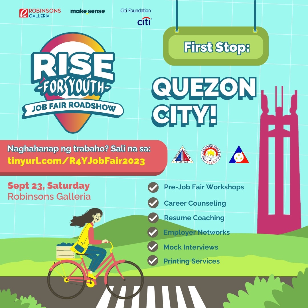 Heads up, QCitizen jobseekers! Halina’t makilahok sa RISE FOR YOUTH JOB FAIR ROADSHOW ng Makesense RISE for Youth, QC Public...