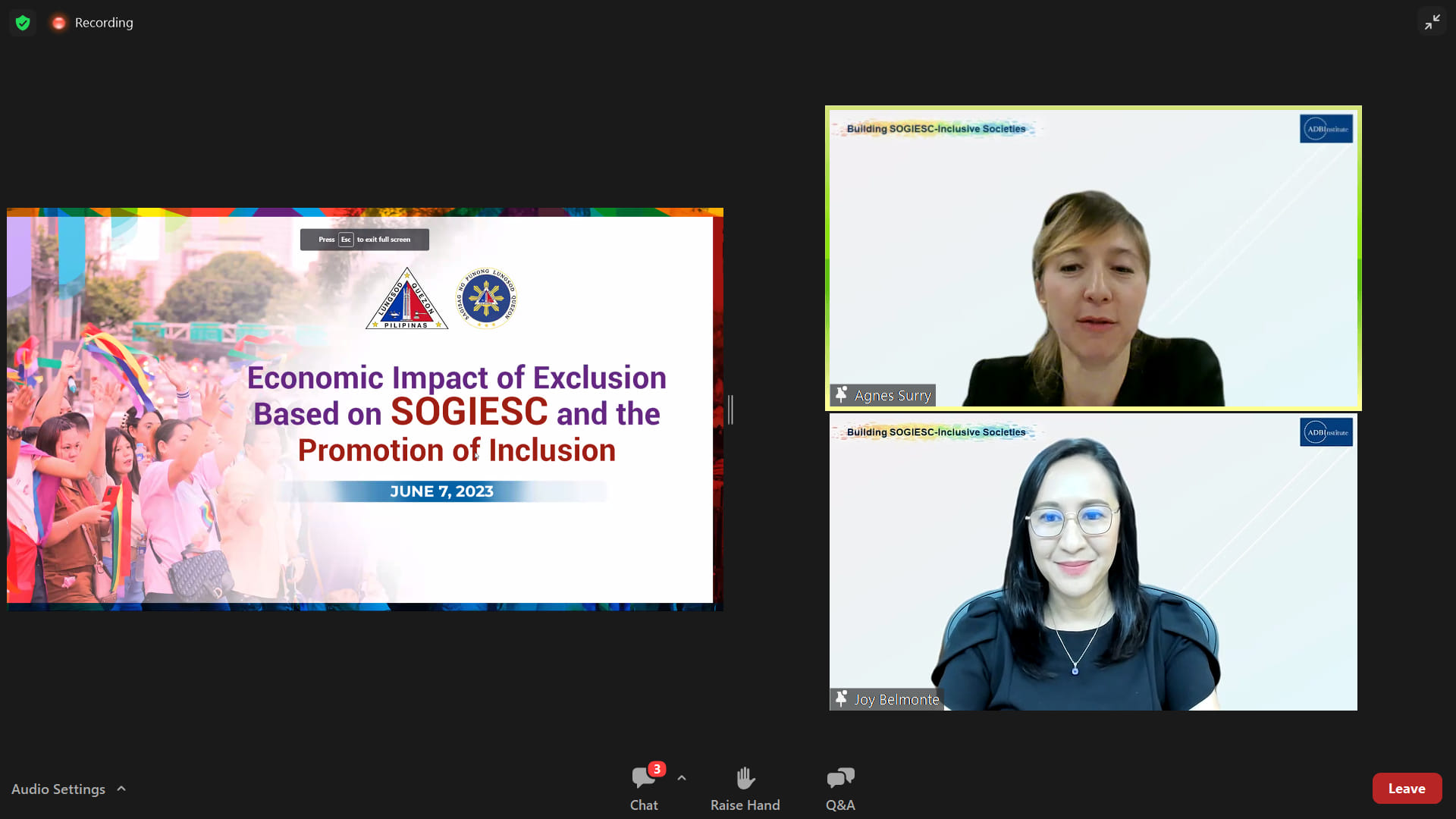 Asian Development Bank Institute Webinar on Economic Impact of Exclusion Based on SOGIESC* and the Promotion of Inclusion