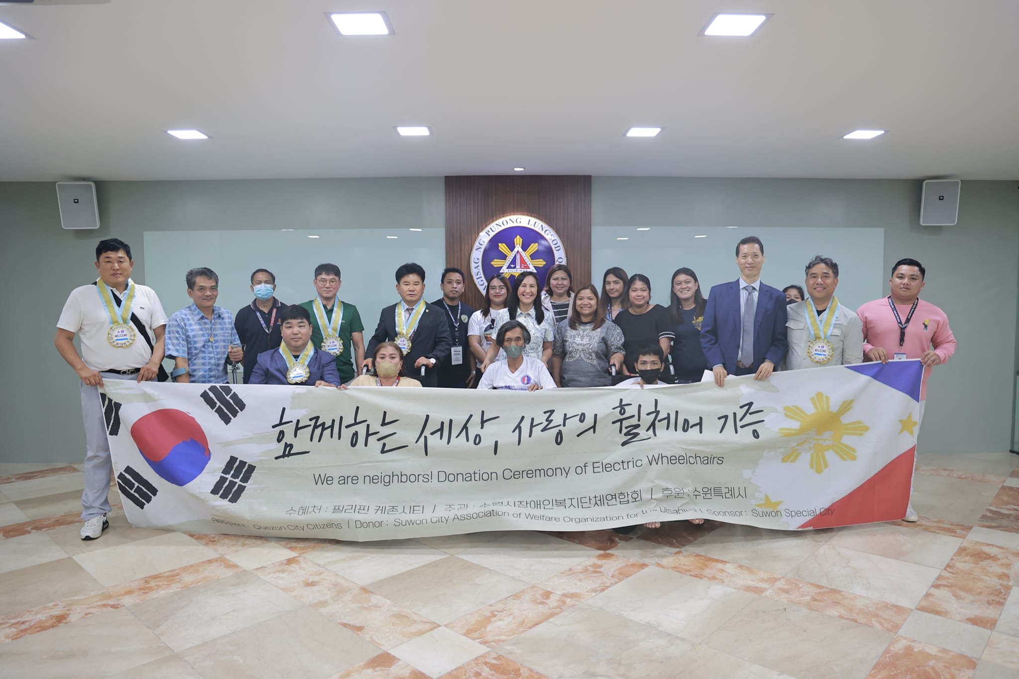 Nakatanggap ang Lungsod Quezon ng 12 electronic wheelchairs mula sa Suwon Special City, South Korea, sa pamamagitan ng Logos Bible...
