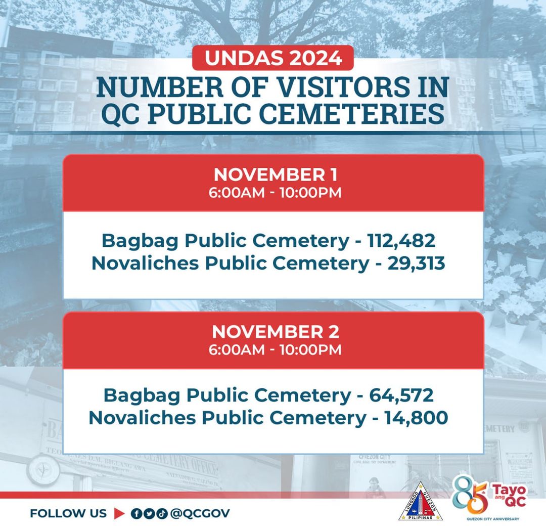 Sa tala ng QC Civil Registry Department, umabot sa 221,167 ang bumisita sa mga pampublikong sementeryo sa Lungsod Quezon mula...