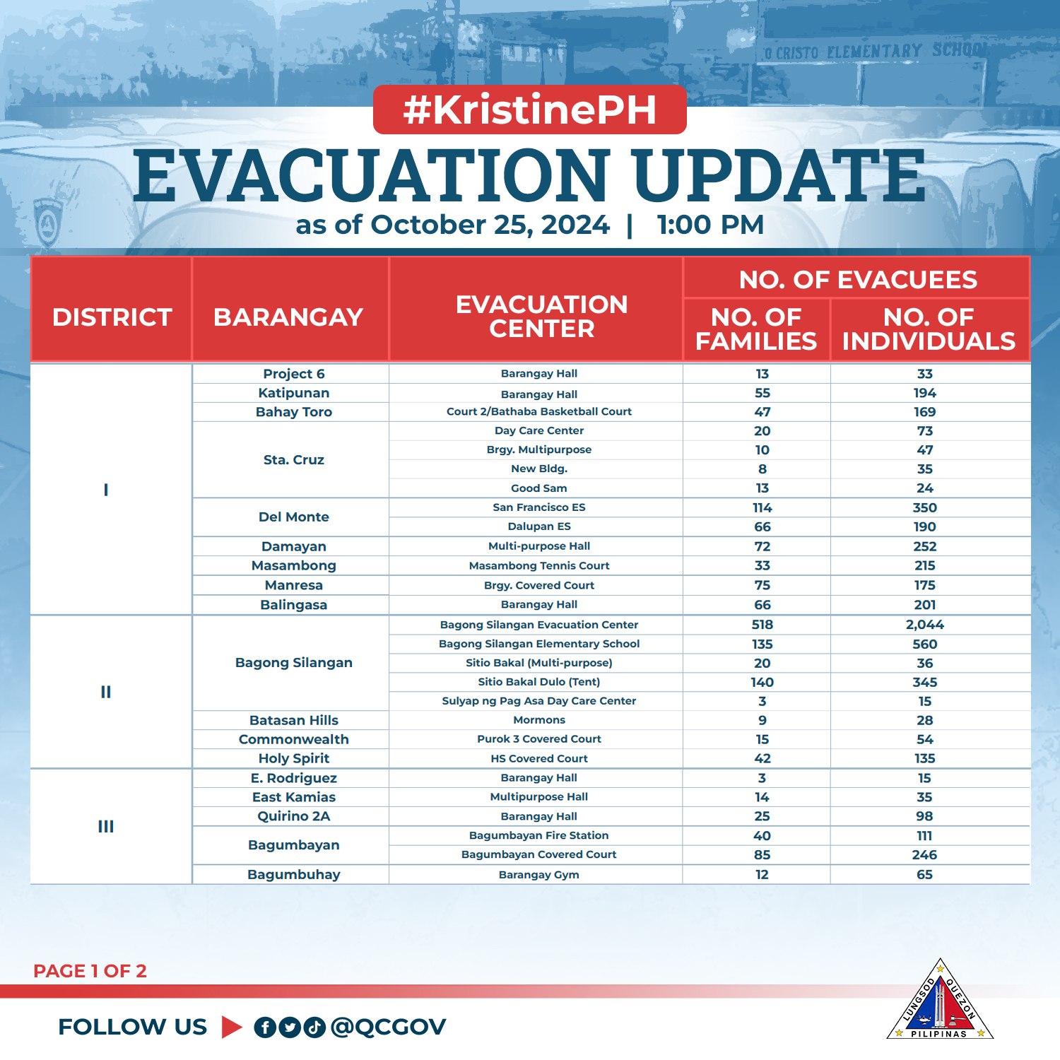 Evacuation Update as of October 25, 2024 | 1:00 PM Bilang pag-iingat sa pagbaha na dulot ng walang-tigil na pag-ulan...