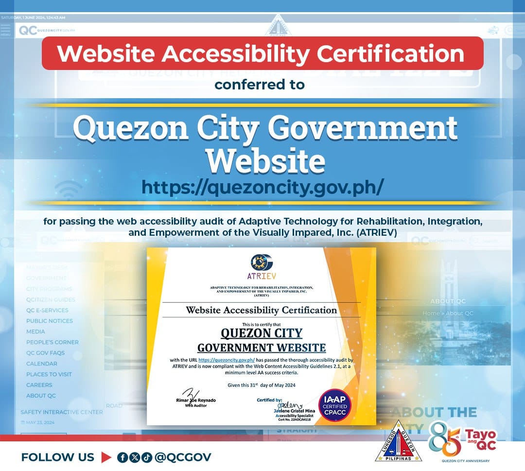 The Quezon City government’s official website has been certified as fully accessible to Persons with Disabilities (PWDs), the first local...