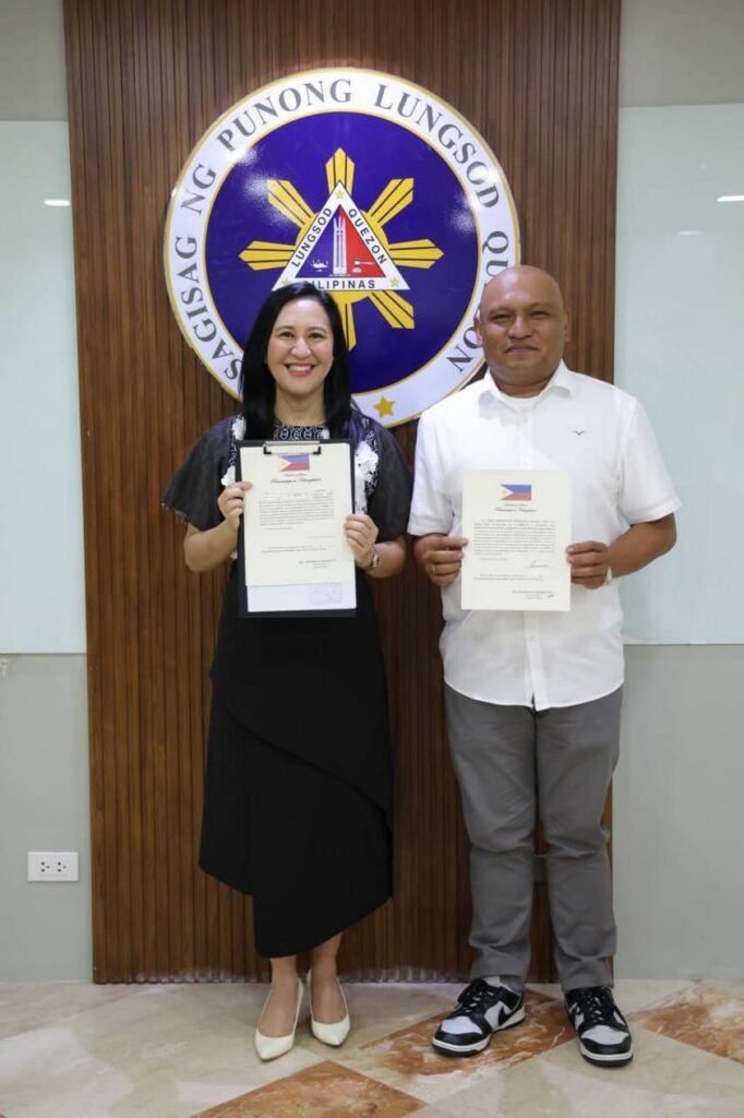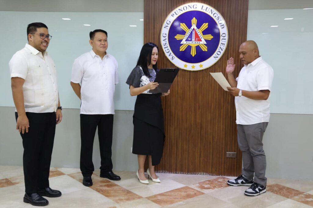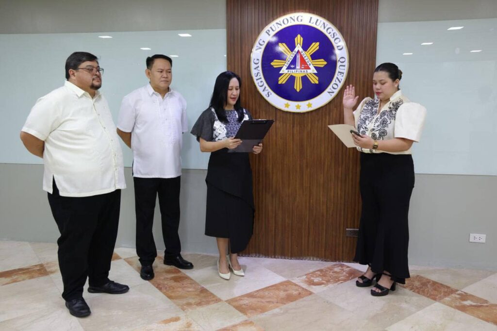 Nanguna si Mayor Joy Belmonte sa oath taking ceremony nina Kagawad Joel Kristian Matimtiman ng Barangay Escopa II at SK Kagawad Laisa Casinto ng Barangay Ramon Magsaysay.